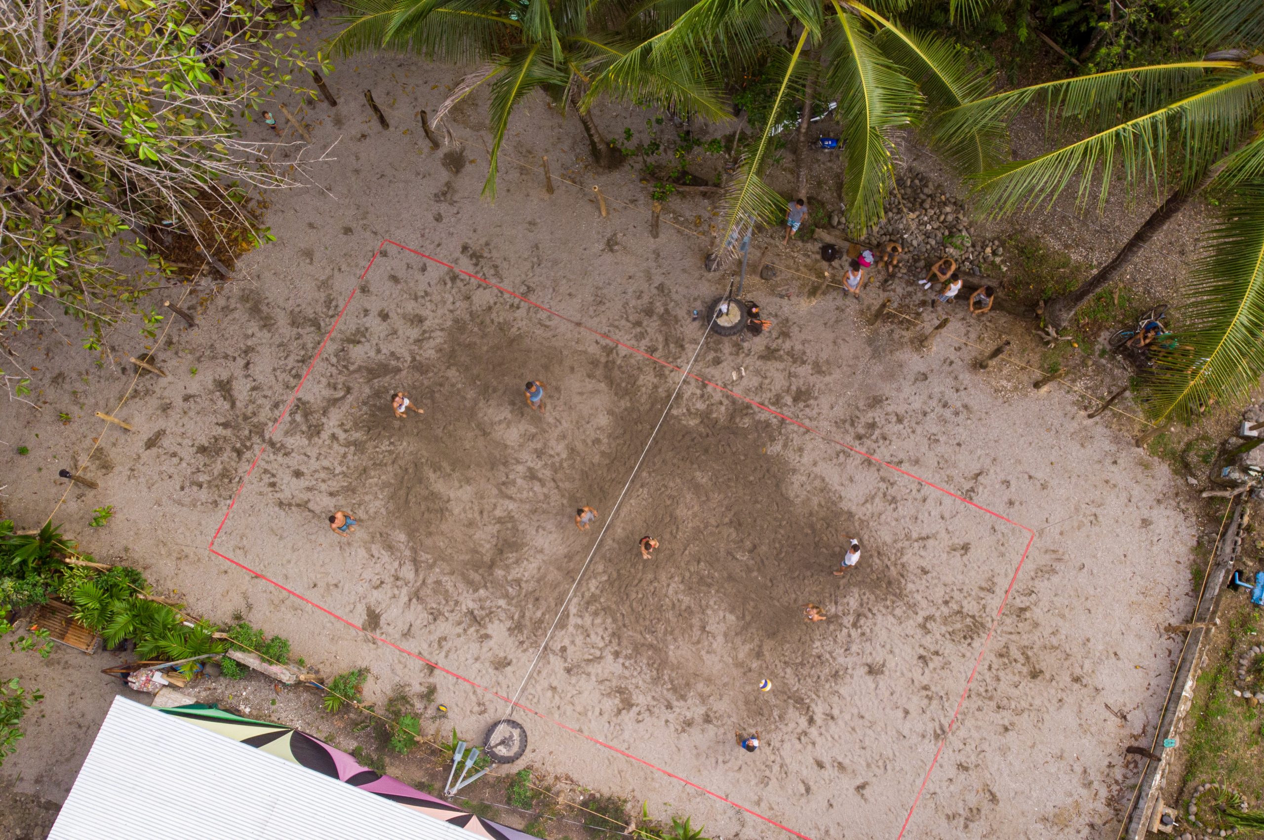 Las Pangas beach volley field is located only 100 meters from the center of Montezuma, overlooking the ocean with natural benches and a comfortable parking space by the side. It has become one of the favorite places for teenagers to get together for a spontaneous volleyball competition or to cheer on their team of friends.