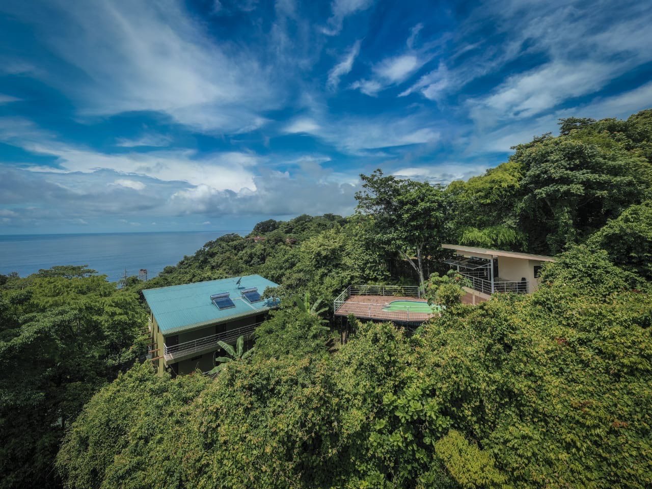 Sunshine Sanctuary Boutique Jungle Lodge is a quiet treasure nestled in the heart of the jungle. Each room has a private entrance and ocean views overlooking pristine paradise. We are located as close to the Montezuma waterfalls as one can stay, which is reached by a private path. We are nestled in a pristine valley surrounded by Costa Rica’s vibrant flora and fauna. We offer a 150 meter private hanging bridge. You can hear both the waves crashing and the waterfalls from our bridge. Included in your stay is a full breakfast, AC, hot water, optic fiber internet, private parking and use of Panorama Cafe/Bar, pool, fully equipped kitchen, and a yoga shala.